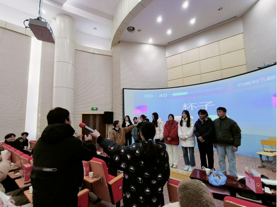 而游戏环节更是让晚会高潮迭起。“击鼓传花”考验着同学们的反应速度,“你画我猜”则展现了同学们的默契与想象力,“摇一摇”拼手速环节,同学们全力以赴,竞争激烈。“加字成句”游戏则是让每位同学脑洞大开,互不相让。特别是“你演我猜”引发全场大笑,节目效果拉满,现场气氛热烈非凡。