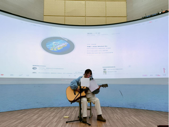 紧张刺激的游戏后,由王恋同学吉他独奏《爱就一个字》收获了全场的掌声与欢呼声。最后,陈思怡同学带来的《左肩》为晚会画上了完美的句号。歌声悠扬,情感深沉,让人们沉浸在音乐的海洋中。