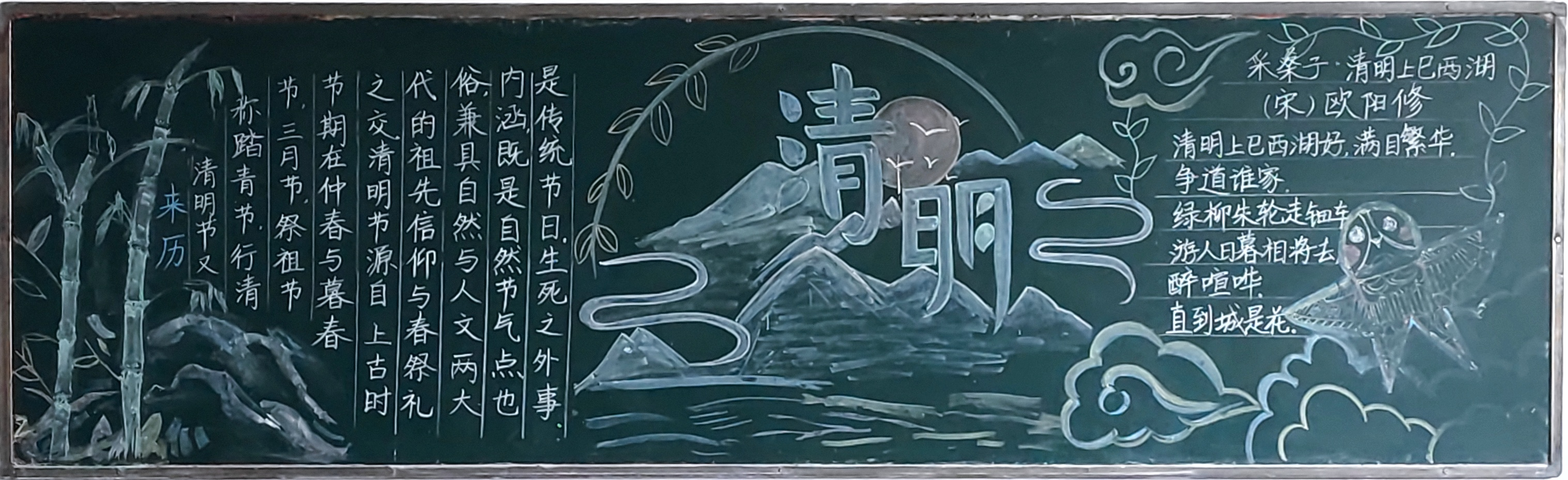 黑板报是校园建设的窗口,是展示班级文化的主要方式,同学们对清明节相关的内容展开了描述与绘画。各班级紧紧围绕主题内容精心准备,积极参加。