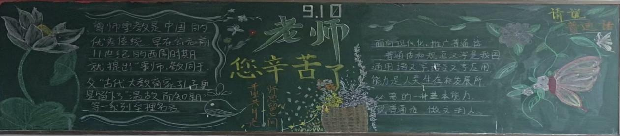 通过这次教师节黑板报的设计,我们希望能够表达对教师的敬意和感激之情,同时也激励学生努力学习,成为社会的有用之才。 普通话黑板报的设计理念应围绕推广普通话的重要性、意义以及实践应用进行展开——23药产三班