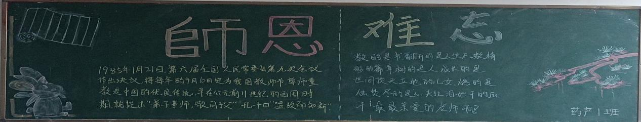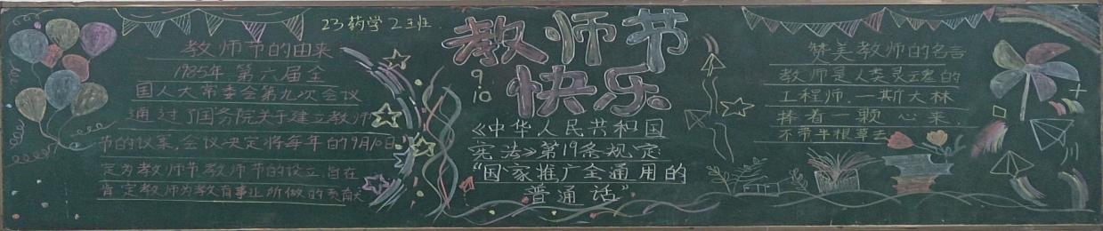 一根教鞭,披荆斩棘带领学生爬上书山;三尺讲台,满载学子数游知识的汪洋大海;半支粉笔,满腔心血只为弟子插上科学的双翼。教师节到了,祝福我们辛勤的园丁幸福安康、快乐古祥!——23药学二班