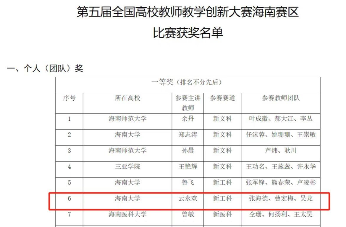 喜报!365官网云永欢老师在第五届全国高校教师教学创新大赛海南赛区荣获一等奖
