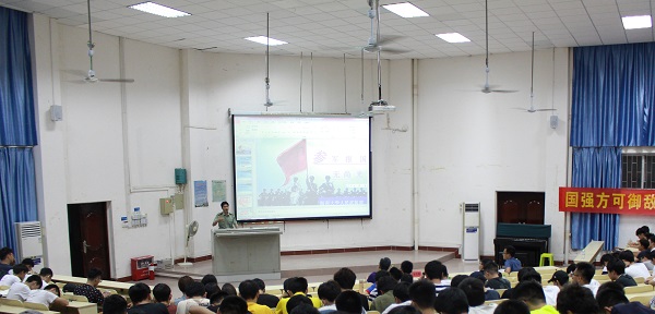 苏文魁副处长首先介绍了我国周边地区的复杂形势,加强国防建设是保卫经济健身成果的必然要求;其次从依法服兵役是宪法和法律赋予大学生的职责和义务,大学生当兵入伍是实现兴军强军的历史使命,对科技强军等军队建设的作用等方面做阐述;然后详细介绍从政府和学校层面分别介绍大学生当兵入伍的优惠政策;最后,苏文魁副处长希望同学们积极响应号召,为青春穿上军绿色的军装。