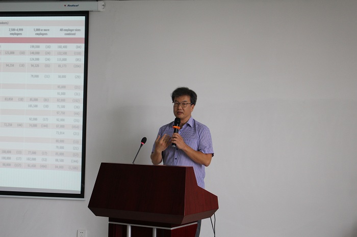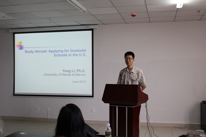 2018年6月8日上午八点,365英国上市官网食品学院在研发楼610教室学院举办美国夏威夷大学招生介绍会,食品学院党委书记邓秀成、副院长史学群、申铉日和党委副书记王红英出席本次介绍会。招生介绍会荣幸邀请到美国夏威夷大学马诺阿分校热带农业与人力资源学院人体营养、食品与动物科学系备李勇教授、美国夏威夷大学马诺阿分校热带农业与人力资源学院食品与动物科学系代理系主任郡素君教授和北卡罗来纳州立大学人类健康研究所博士后何凯希教授来院为学院学生做专业介绍。