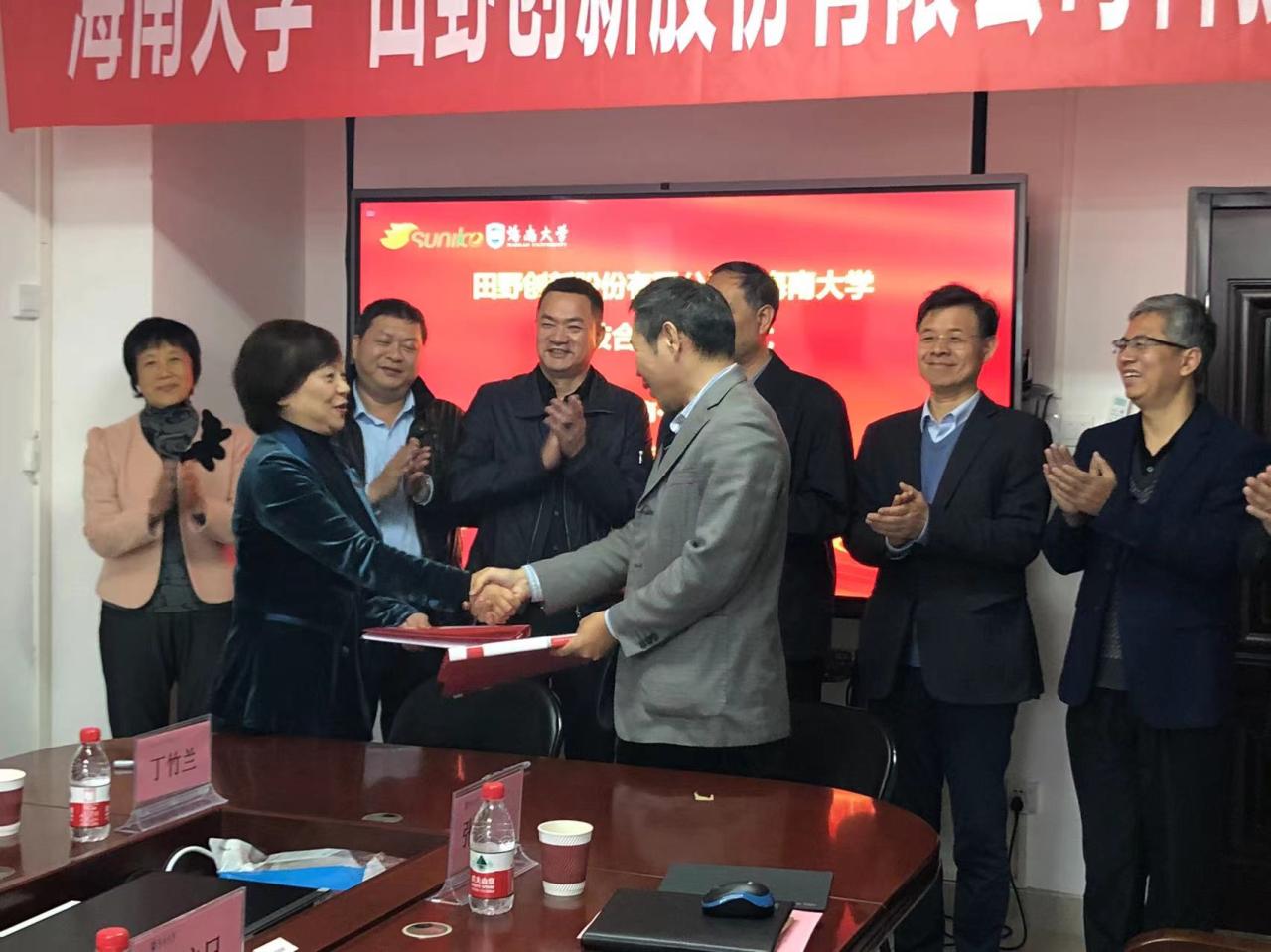 2022年2月25日下午,365英国上市官网与田野创新股份有限公司在365英国上市官网研发楼举行科技合作洽谈会暨合作签约仪式。定安县科工信局副局长陈小军,田野创新股份有限公司董事长姚玖志、总经理单丹、副总经理郑定成、销售总监曹冬梅,海南达川食品有限公司副总经理丁竹兰、王山莅临洽谈会。365英国上市官网科学技术发展院院长邹勇华、365英国上市官网院长李从发、书记邓秀成等班子成员、研究员陈卫军(项目主持人)及相关系室负责人参加洽谈会。