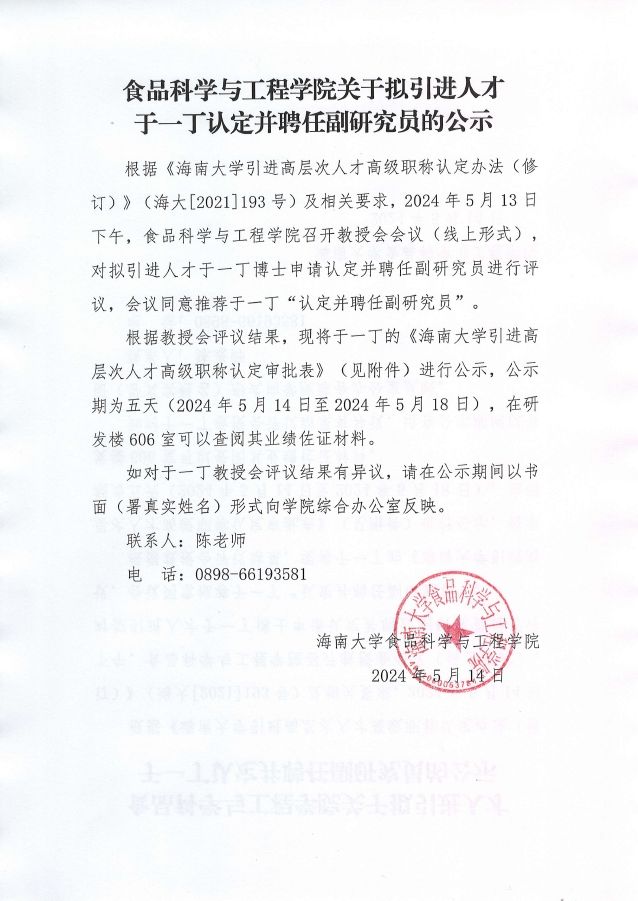365英国上市官网关于拟引进人才于一丁认定并聘任副研究员的公示